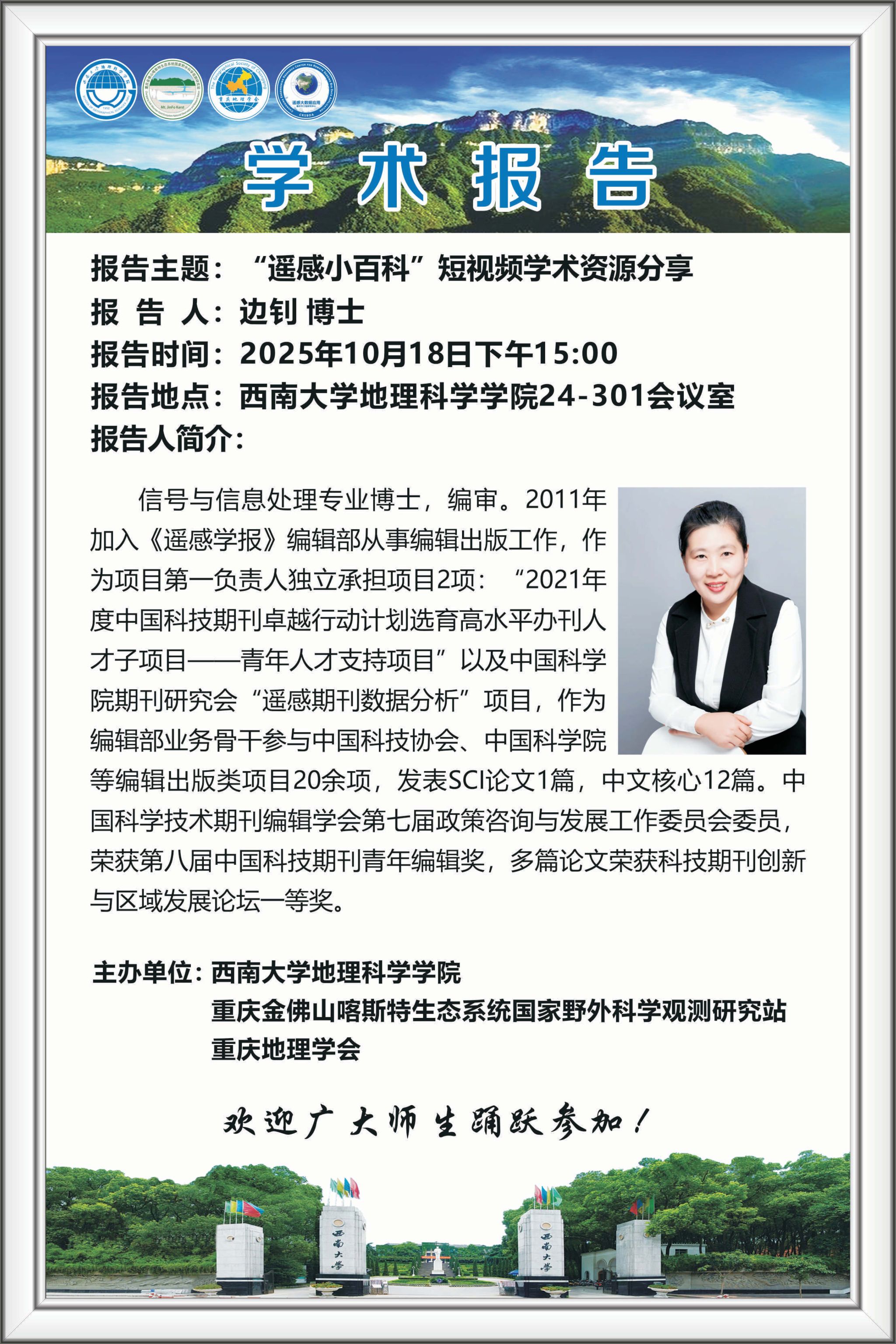“遥感小百科”短视频学术资源分享-西南大学地理科学学院