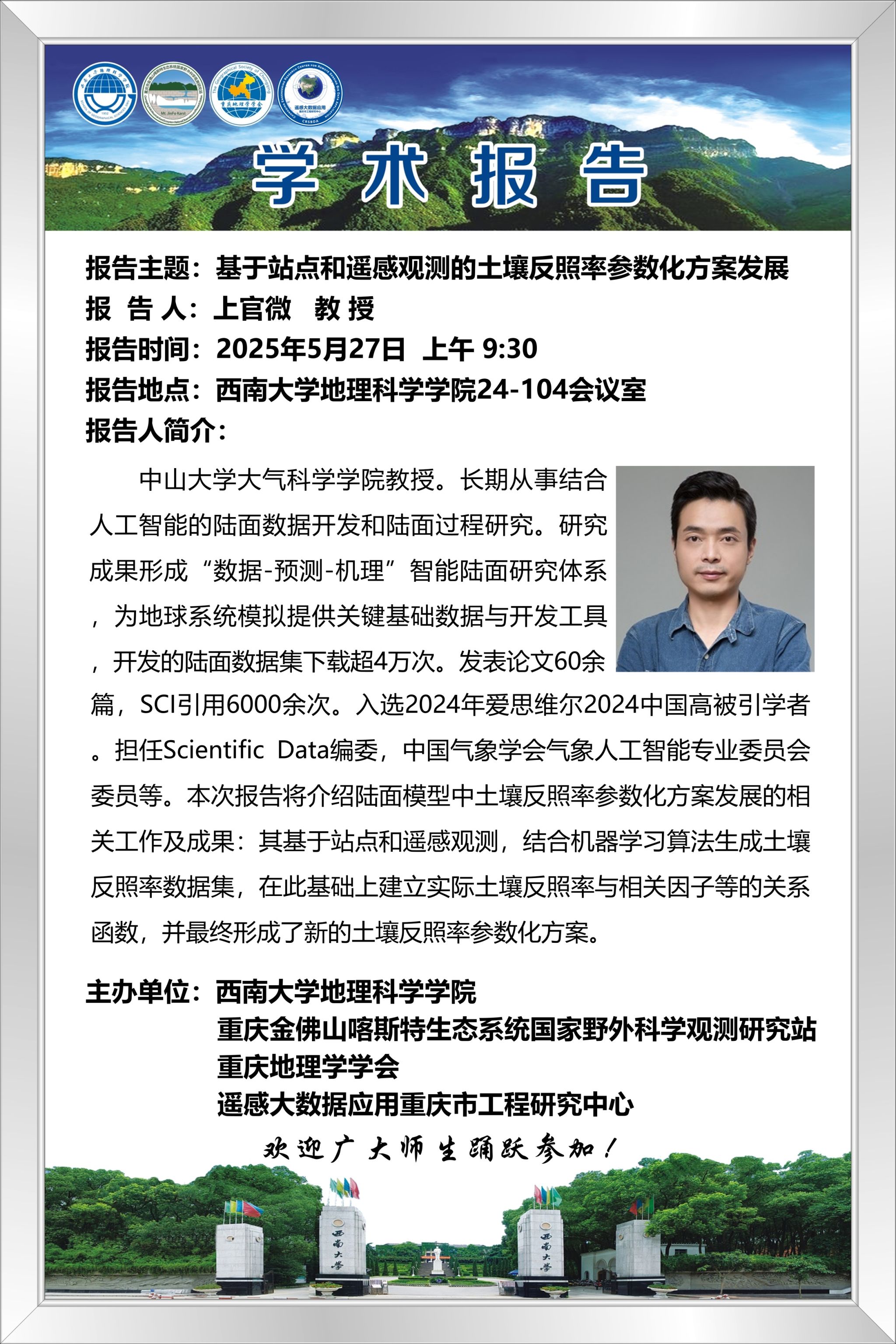 基于站点和遥感观测的土壤反照率参数化方案发展-西南大学地理科学学院