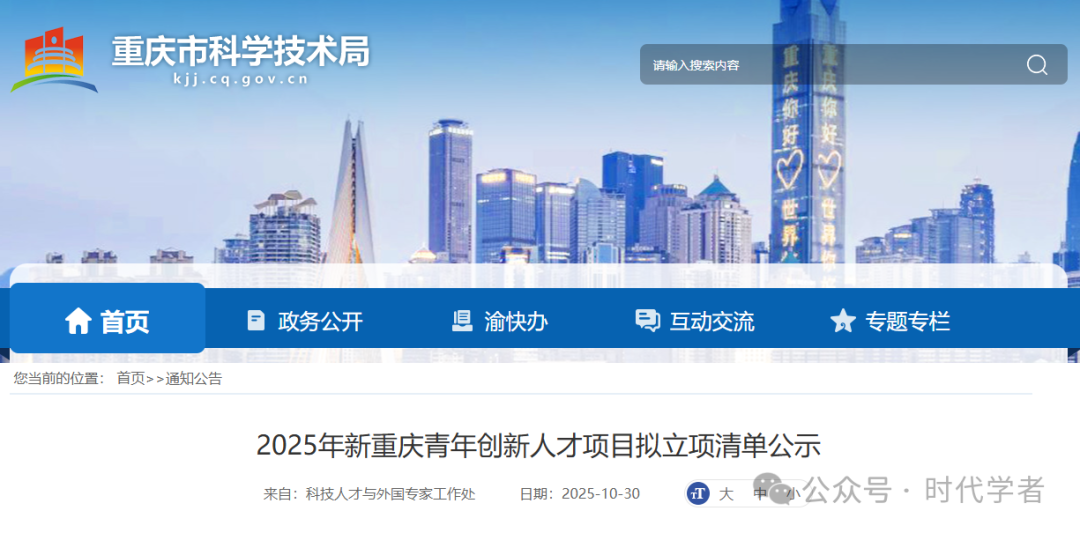 按照《新重庆青年创新人才项目管理办法(试行)》,市科技局启动实施了2025年新重庆青年创新人才项目。立项建议经市科技局办公会审议通过,拟立项项目100项,现予以公示(详见附件),公示时间为2025年10月30日至11月5日。